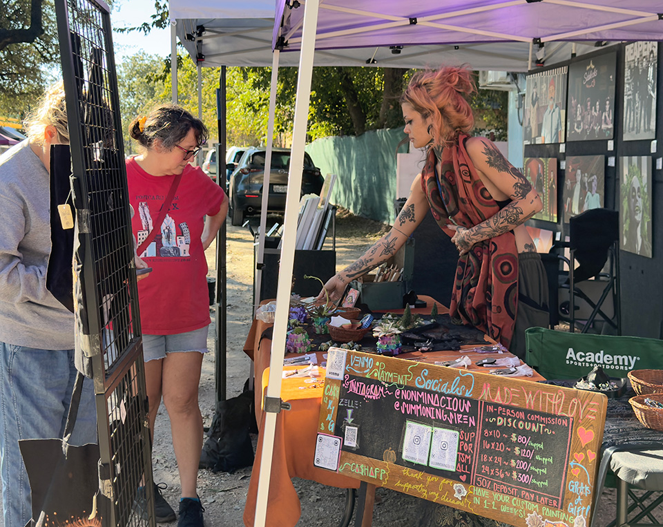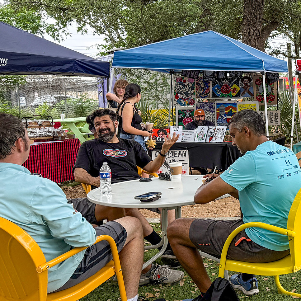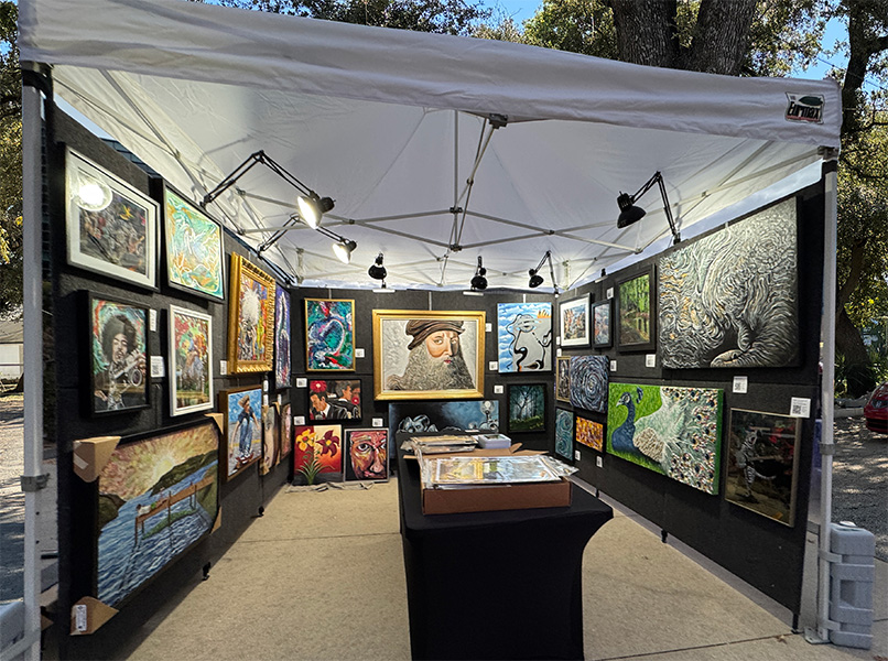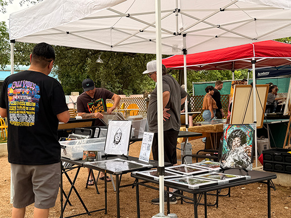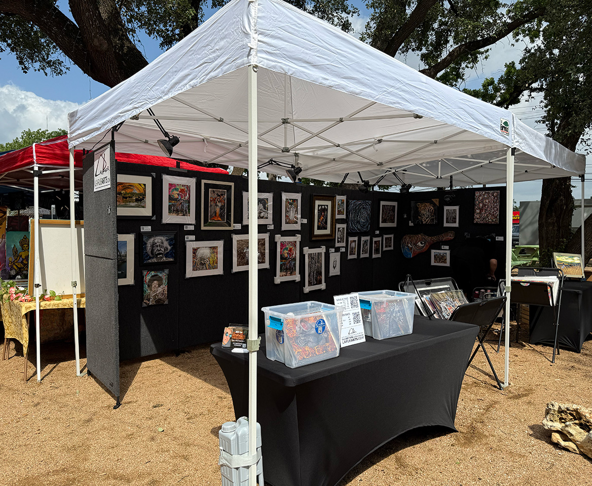 Austin Art Park produced 1 event in 2024, will have four events scheduled in 2025, and is on track to produce 6 events in 2026. Events like ours are essential in the process of building a career, making money, new friends and art industry alliances. We keep things easy for the Artists. They drive gear right up to the site to unload and load out. Everyone is usually very helpful when someone needs help setting up! After were set up we get together for introductions and a bit of art talk and have some great gourmet coffee provided by our sponsor Dhaba Cafe as well as other offerings from the wide range of food vendors. We share ideas, trade art, learn, laugh, sell art and enjoy life!