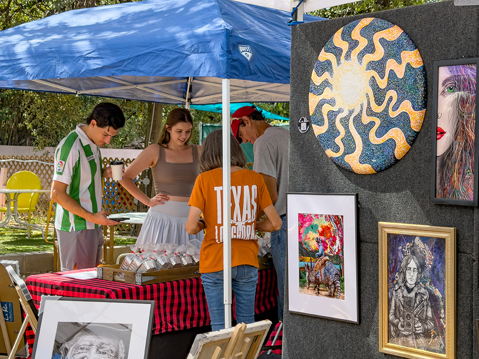 The event is publicized locally via our social media platforms, digital media platforms and event listings, email newsletter and press releases submitted to local news outlets in conjunction with invitations and offers to Austin area artist groups and associations. *Austin Art Park reserves the right to use photographs and/or digital images for the purpose of publicity for the exhibit and/or the artist. A great day in the Austin Art Park!